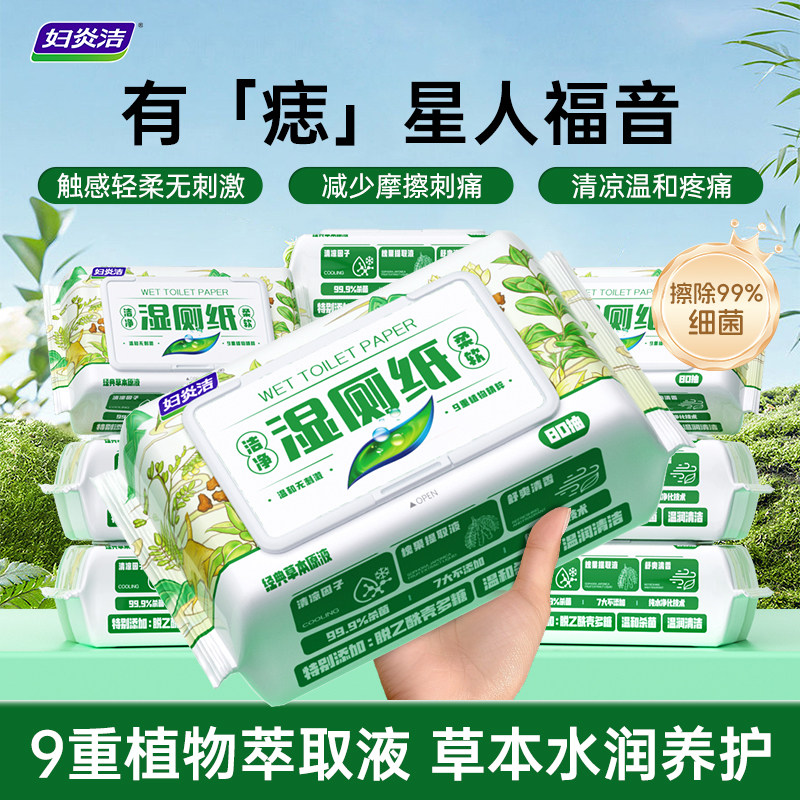 【5/包!】妇炎洁清凉草本湿厕纸80抽*3包